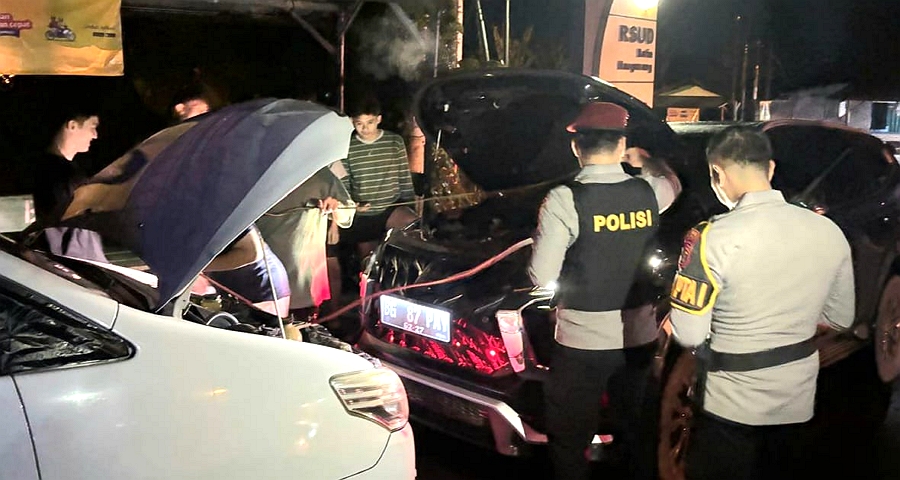kepolisian setelah melaporkan kendaraannya mengalami mogok di jalur dua masuk